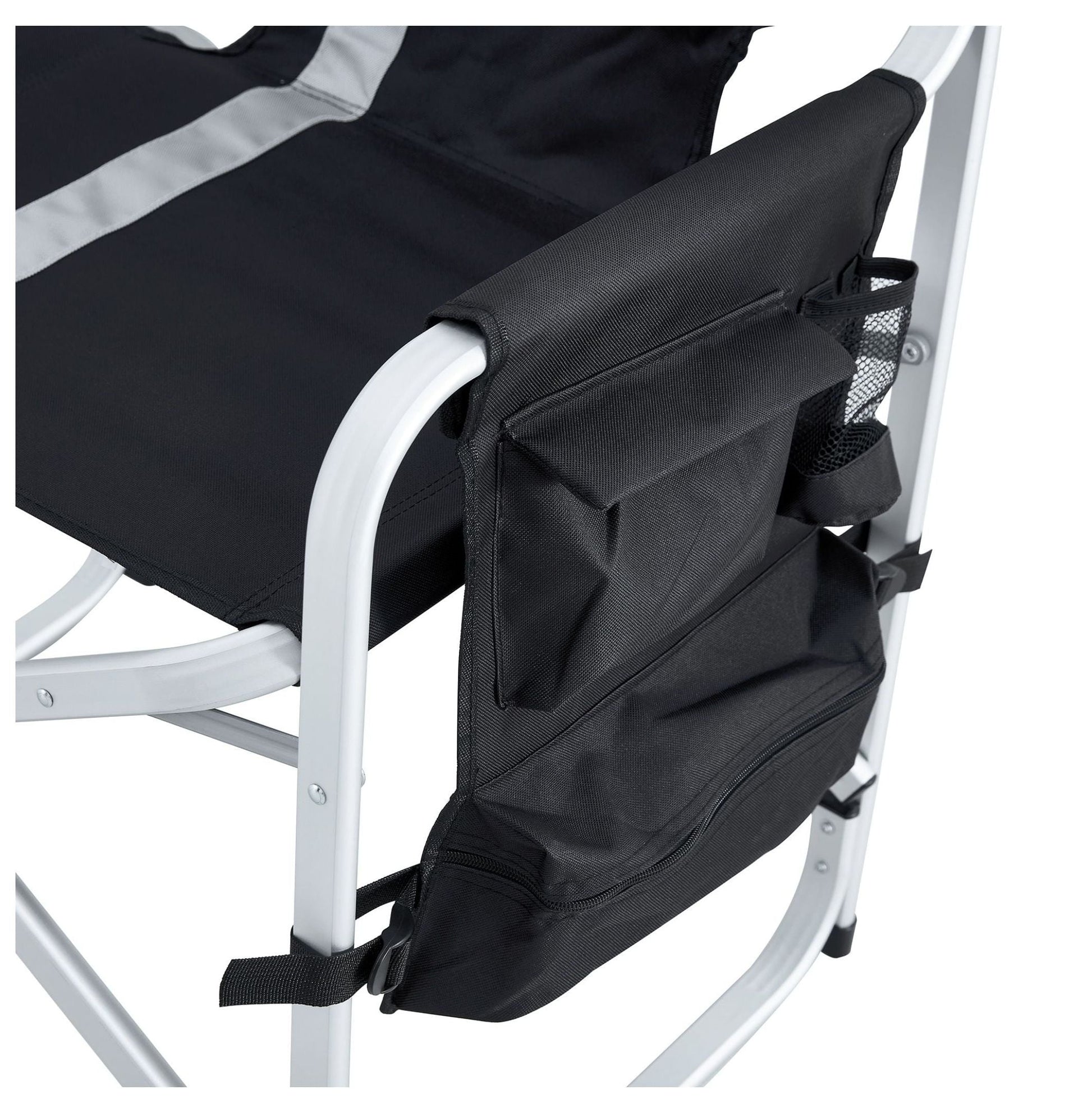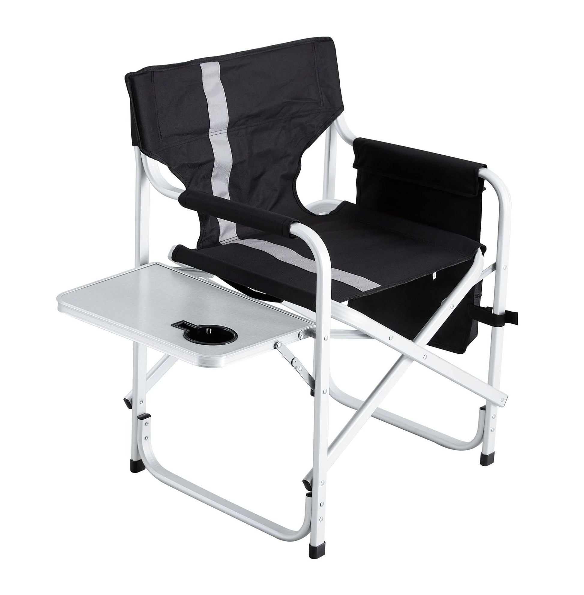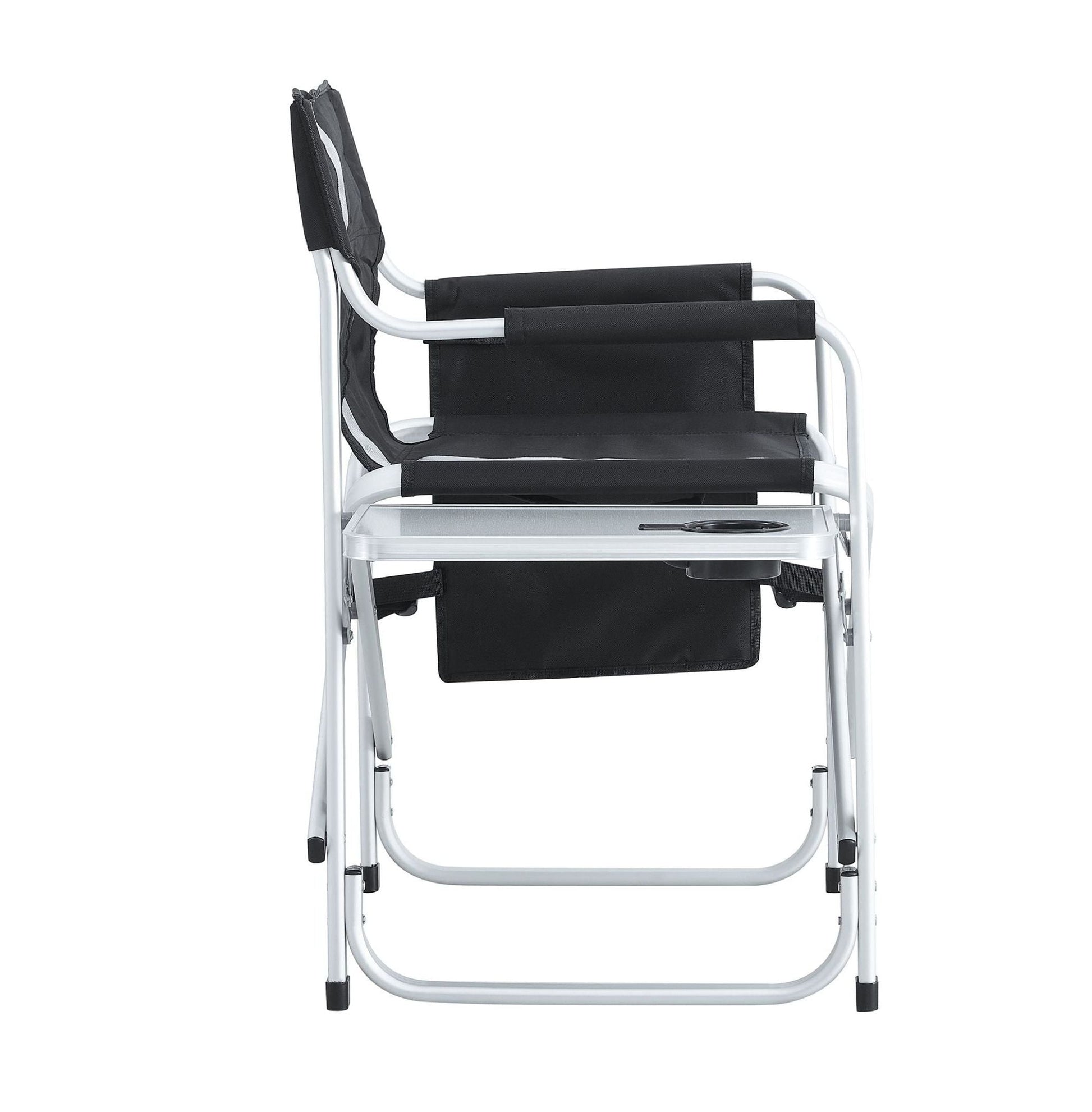 1-piece Padded Folding Outdoor Chair with Side Table and Storage Pockets, Lightweight Oversized Directors Chair for indoor, Outdoor Camping, Picnics and Fishing, Black/Grey Black+ Gray